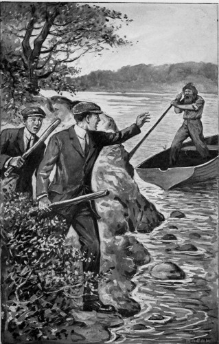 “Oh, no! The day before that, Chip Macklin and two other of the smaller boys went out, along the river, and the wild man came after them and shoved Chip into the water. He yelled to them never to come near him again. The other fellows ran away, and as soon as Chip could get out of the water he went after ’em. Then, three days later, Doctor Clay sent out Mr. Dale and Horsehair, the driver, to look into the matter, and the wild man met them at the bridge and threw mud balls at ’em. One mud ball hit the teacher in the arm, and one struck Horsehair in the nose and 3 made it bleed. Horsehair was afraid to go on, because the wild man jumped around and shouted so furiously. Mr. Dale tried to catch him, but he ran away.”