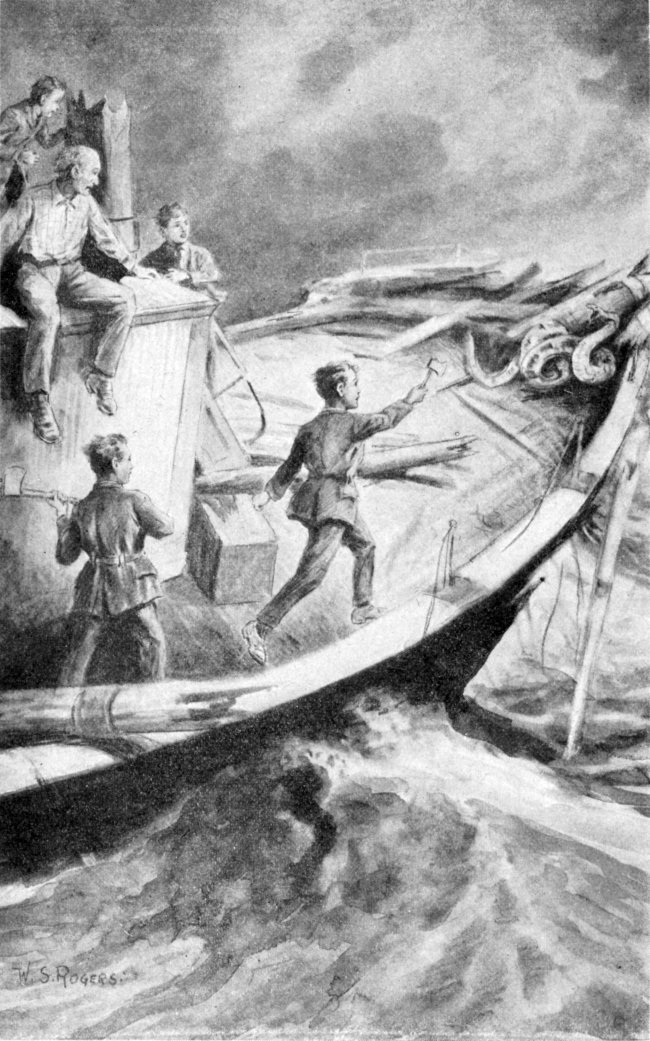 From their homes in New York City the four younger Rovers went to boarding school, as related in the first volume of the Second Series, entitled “The Rover Boys at Colby Hall.” From that school the scene was shifted to “Snowshoe[iv] Island” and then to doings while “Under Canvas.” Then the boys went “On a Hunt,” and, later, to “The Land of Luck.” Then came exciting days at “Big Horn Ranch” and at “Big Bear Lake,” where we last met them. In the present volume the scene is shifted to the Atlantic Ocean. The boys were shipwrecked and had many thrilling adventures.
