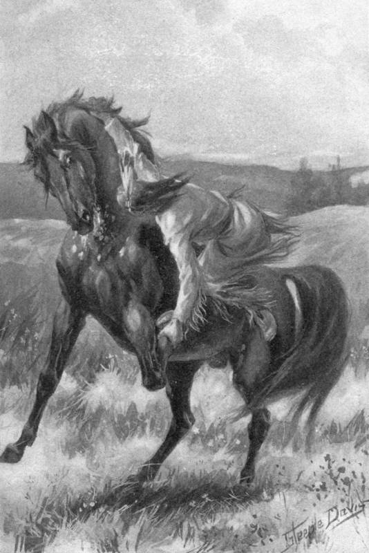 When the young Shawanoe finished the words quoted Whirlwind laid his nose over his shoulder. Deerfoot placed his arms about the satin neck, fondled the forelock, patted the nose, kissed it, and then turned abruptly to his friends: