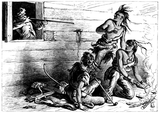 This was an amazing proposition to make, but it was acted upon at once, extraordinary as it may seem. Blossom was very nervous while gathering wood and giving what assistance he could. He continually glanced around him, and peeped furtively over the trunk, wondering why the red men did not come forward and take them prisoners.