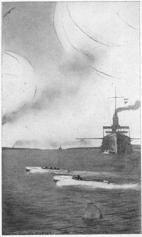 While this snatch of conversation was going on, Noxon, who had cut off the power, was edging nearer. Calvert and Hagan squeezed each other so hard that it looked as if they would push themselves through the hull of the launch.
