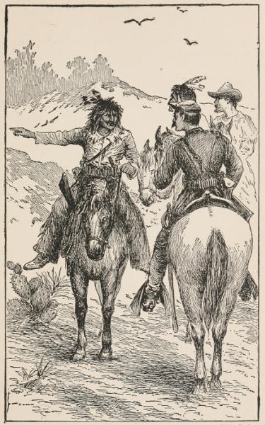Meantime Mendez and Lieutenant Decker were doing their part well. Accompanied by a squad of half a dozen cavalry, they crossed Salt River at a point where they were certain of being seen by the hostiles, riding here and there, apparently in a blind search for the trail. They were ordered to keep this up until night, and then recross at different points, come together on the northern bank and return to the fort.