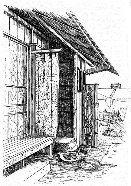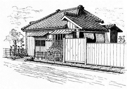 The first sight of a Japanese house,—that is, a house of the people,—is certainly disappointing. From the infinite variety and charming character of their various works of art, as we had seen them at home, we were anticipating new delights and surprises in the character of the house; nor were we on more intimate acquaintance to be disappointed. As an American familiar with houses of certain types, with conditions among them signifying poverty and shiftlessness, and other conditions signifying refinement and wealth, I was not competent to judge the relative merits of a Japanese house.