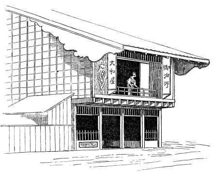 In regard to the architecture of Japan, as to other matters, one must put himself in an attitude of sympathy with her people, or at least he must become awakened to a sympathetic appreciation of their work and the conditions under which it [pg 46] has arisen. Above all, he must rid himself of all preconceived ideas as to what a house should be, and judge the work of a Japanese builder solely from the Japanese stand-point. Architectural edifices, such as we recognize as architectural, do not exist outside her temples and castles. Some reason for this condition of things may be looked for in the fact that the vast majority of the Japanese are poor,—very poor; and further, in the fact that the idea of co-operative buildings, with the exception of the Yashiki barracks, has never entered a Japanese mind,—each family, with few exceptions, managing to have a house of its own. As a result of this, a vast number of the houses are shelters merely, and are such from necessity; though even among these poorer shelters little bits of temple architecture creep in,—quite as scanty, however, in that respect as are similar features in our two-storied wooden boxes at home, which may have a bit of Grecian suggestion in the window caps, or of Doric in the front door-posts.