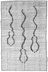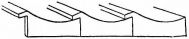 [pg 39]Draw-shaves are in common use. The saws are of various kinds, with teeth much longer than those of our saws, and cut in different ways. Some of these forms reminded me of the teeth seen in certain recently patented saws in the United States. Some saws have teeth on the back as well as on the front, one edge being used as a cross-cut saw (fig. 27 B, C). The hand-saw, instead of having the curious loop-shaped handle made to accommodate only one hand as with us, has a simple straight cylindrical handle as long as the saw itself, and sometimes longer. Our carpenters engage one hand in holding the stick to be sawed, while driving the saw with the other hand; the Japanese carpenter, on the contrary, holds the piece with his foot, and stooping over, with his two hands drives the saw by quick and rapid cuts through the wood. This style of working and doing many other things could never be adopted in this country without an importation of Japanese backs. It was an extraordinary sight to see the attitudes these people [pg 40] assumed in doing work of various kinds. A servant girl, for example, in wiping up the floor or verandah with a wet cloth, does not get down on her knees to do her work, but bending over while still on her feet, she pushes the cloth back and forth, and thus in this trying position performs her task.