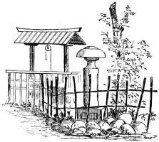 In considering the temples of the Japanese, moreover, one should take into account their methods of worship, and precisely what use the worshippers make of these remarkable edifices. And so with intelligent sympathy finally aroused in all these matters, they begin to wear a new aspect; and what appeared grotesque and unmeaning before, now becomes full of significance and beauty. We see that there is something truly majestic in the appearance of the broad and massive temples, with the grand upward sweep of their heavily-tiled roofs and deep-shaded eaves, with intricate maze of supports and carvings beneath; the whole sustained on colossal round posts locked and tied together by equally massive timbers. Certainly, to a Japanese the effect must be inspiring beyond description; and the contrast between these structures and the tiny and perishable dwellings that surround them renders the former all the more grand and impressive. Foreigners, though familiar with the cathedral architecture of Europe, must [pg 47] yet see much to admire in these buildings. Even in the smaller towns and villages, where one might least expect to find such structures, the traveller sometimes encounters these stately edifices. Their surroundings are invariably picturesque; no sterile lot, or worthless sand-hill outside the village, will suit these simple people, but the most charming and beautiful place is always selected as a site for their temples of worship.