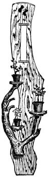 The frame-work of a building is often revealed in the room in a way that would delight the heart of an Eastlake. Irregularities in the form of a stick are not looked upon as a hindrance in the construction of a building. From the way such crooked beams are brought into use, one is led to believe that the builder prefers them. The desire for rustic effects leads to the selection of odd-shaped timber. Fig. 7 represents the end of a room, wherein is seen a crooked cross-piece passing through a central upright, which sustains the ridge-pole.