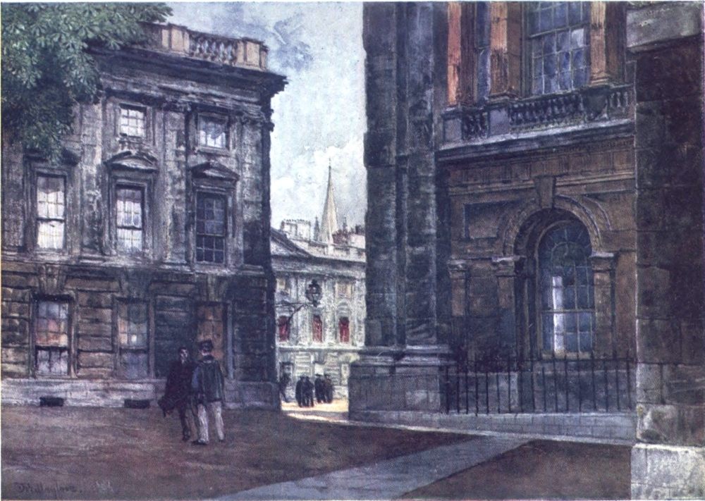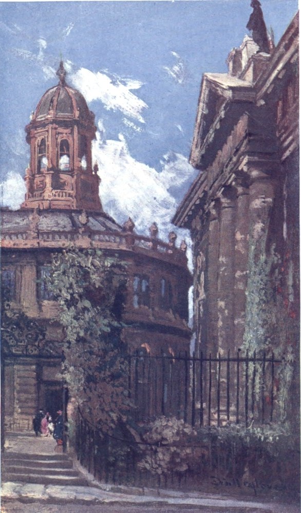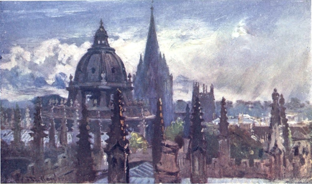 To the right of the “Grove” are the two spires of the Cathedral and the University Church of St. Mary, with the Radcliffe dome and the “Schools” tower farther on.