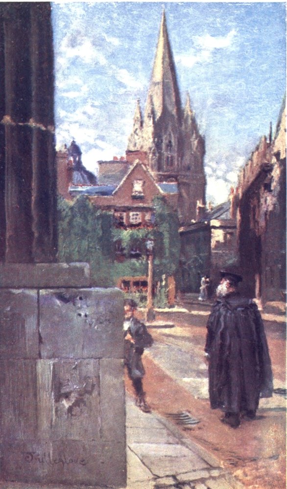 Looking west, on the right are some old houses, beyond which lie Trinity and Balliol Colleges. [Pg 7]