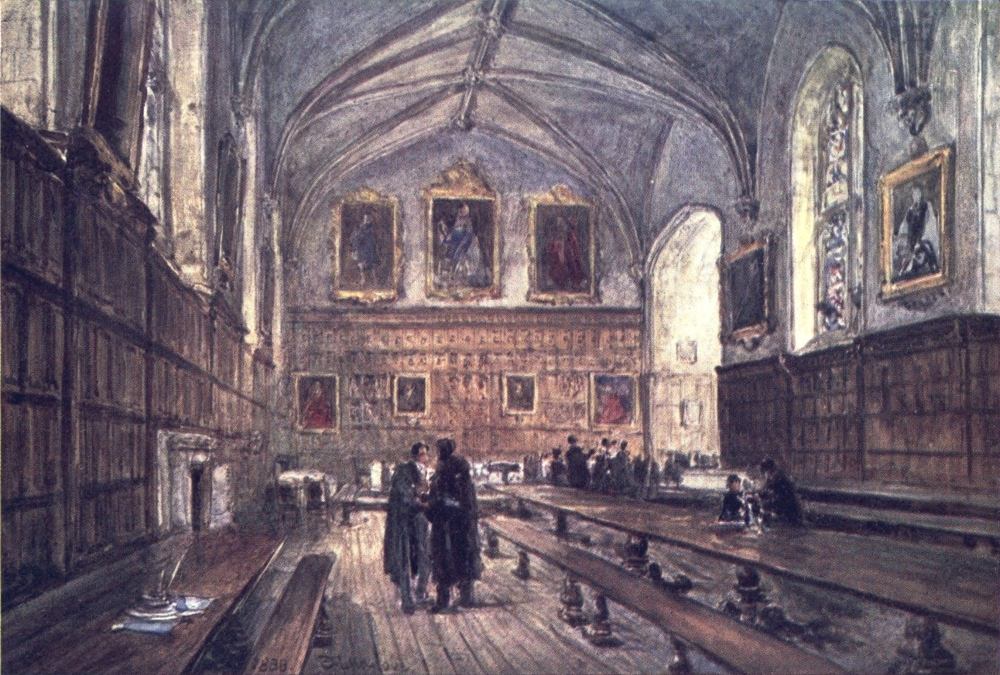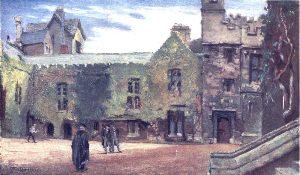 Nowhere is green so wonderful as at Magdalen or Trinity. But their sweetness is no more than the highest expression of the privacy of Oxford. Turn aside at the gate that lies nearest your path; enter; and you will find a cloister or cloistral calm, free from wolf and ass. “The walks at these times,” said a vacation visitor, “are so much one’s own—the tall trees of Christ’s, the groves of Magdalen! The halls deserted, and with open doors inviting one to slip in unperceived, and pay a devoir to some Founder, or noble or royal Benefactress (that should have been ours) whose portrait seems to smile upon their overlooked beadsman and to adopt me for their own. Then, to take a peep in by the way at the butteries, and sculleries, redolent of antique hospitality; the immense caves of kitchens, kitchen fire-places, cordial recesses; ovens where the first pies were baked four centuries ago; and spits which have cooked for Chaucer! Not the meanest minister among the dishes but is hallowed to me through his imagination, and the Cook goes forth a Manciple.” With a little effrontery and an English accent you may enjoy the inmost bowers of the Fellows[Pg 34] or, Si qua est ea gloria, gather fruit from the espaliers of the president. The walls are barricaded only with ivy, or wallflower, or the ivy-leaved toadflax and its delicate bells. But the stranger never learns that the seclusion of Oxford is perennial, and that only in the vacations may he suffer from what the old pun calls porta eburna. The place is habitually almost deserted, except by the ghosts of the dead. Returning to it, when friends are gone, and every one is a stranger, the echoes of our footsteps in the walls are as the voices of our dead selves; we are among the ghosts; the past is omnipotent, even terrible. Echoes, quotes Montaigne, are the spirits of the dead, and among these mouldering stones we may put our own interpretation upon that. And no one that has so returned, or that comes a reverent stranger for the first time to Oxford, can read without deep intelligence the lines which are put into the mouth of Lacordaire in “Ionica”:—