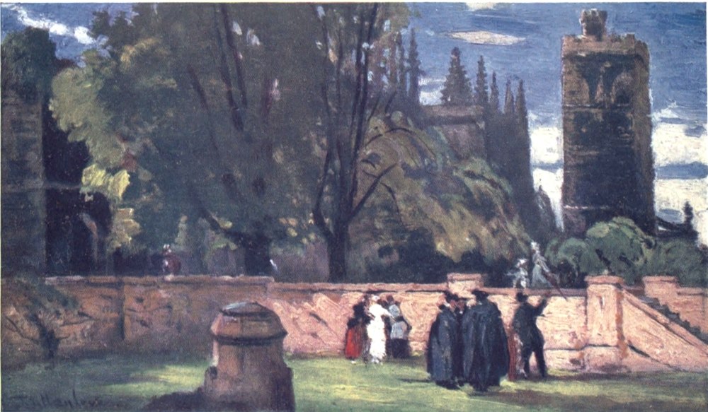 “The pictures are exceedingly beautiful, Mr. Fulleylove’s work being reproduced by the three-colour process in an exceedingly fine way. The letterpress, written by the daughter of Dr. David Masson, provides full and interesting reading, in which every one will delight.”—Edinburgh Evening News.