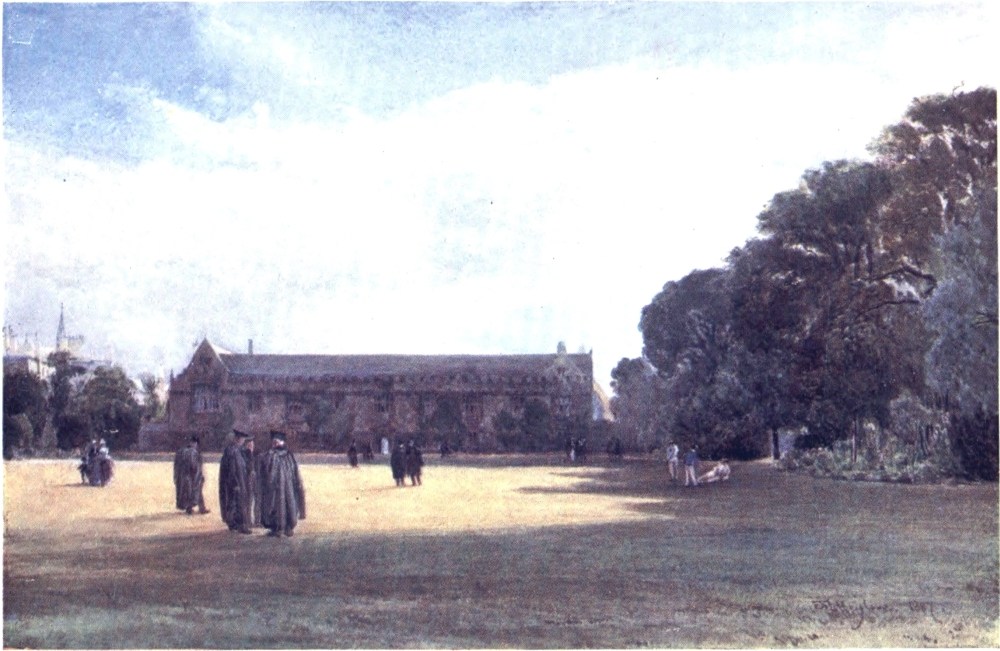 In Oxford nothing is the creation of one man or of one year. Every college and church and garden is the work of centuries of men and time. Many a stone reveals an octave of colour that is the composition of a long age. The founder of a college laid his plans; in part, perhaps he fixed them in stone. His successors continued the work, and without haste, without contempt of the future or ignorance of the past, helped the building to ascend unto complete beauty by means of its old and imperfect selves. The Benedictine Gloucester House of 1283 has grown by strange methods into the Worcester College of to-day. The Augustinian Priory site is now occupied by Wadham. St. Alban’s Hall is no more; but its lamp—“Stubbin’s moon”—is a light in a recess of Merton. Wolsey drew upon the bank of old foundations for the munificence which is still his renown. A chantry for the comfort of departed souls became a kind of scholarship.[Pg 38][Pg 37]