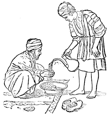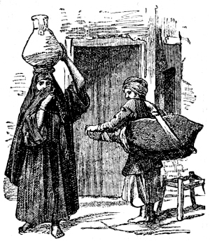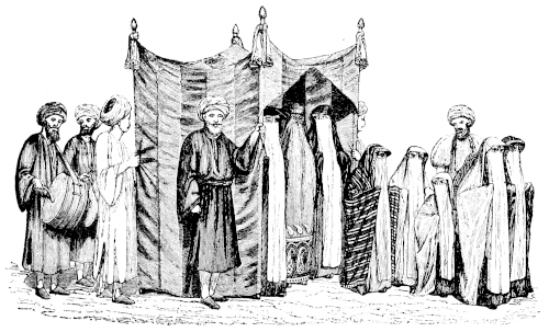 When I was first acquainted with the sheykh Ahmad, he had long been content with one wife; but now he has indulged himself with a second,[4] who continues to live in her parents’ house: yet he has taken care to assure me, that he is not rich enough to refuse my yearly present of a dress. On my visiting him for the second time during my present residence in this place, his mother came to the door of the room in which I was sitting with him, to complain to me of his conduct in taking this new wife. Putting her hand within the door, to give greater effect to her words by proper action (or perhaps to show how beautifully the palm, and the tips of the fingers, glowed with the fresh red dye of the xv“henna”), but concealing the rest of her person, she commenced a most energetic appeal to my sympathy.—“O Efendee!” she exclaimed, “I throw myself upon thy mercy! I kiss thy feet! I have no hope but in God and thee!” “What words are these, my mistress?” said I: “what misfortune hath befallen thee? and what can I do for thee? Tell me.” “This son of mine,” she continued, “this my son Ahmad, is a worthless fellow: he has a wife here, a good creature, with whom he has lived happily, with God’s blessing, for sixteen years; and now he has neglected her and me, and given himself up to a second wife, a young, impudent wench: he lavishes his money upon this monkey, and others like her, and upon her father and mother and uncles and brother and brother’s children, and I know not whom besides, and abridges us, that is, myself and his first wife, of the comforts of which we were before accustomed. By the Prophet! and by thy dear head! I speak truth. I kiss thy feet, and beg thee to insist upon his divorcing his new wife.”—The poor man looked a little foolish while his mother was thus addressing me from behind the door; and as soon as she was gone, promised to do what she desired. “But,” said he, “it is a difficult case. I was in the habit of sleeping occasionally in the house of the brother of the girl whom I have lately taken as my wife: he is a clerk in the employ of ’Abbás Básha; and rather more than a year ago, ’Abbás Básha sent for me, and said, ‘I hear that you are often sleeping in the house of my clerk Mohammad. Why do you act so? Do you not know that it is very improper, when there are women in the house?’ I said, ‘I am going to marry his sister.’ ‘Then why have you not married her already?’ asked the Básha. ‘She is only nine years of age.’ ‘Is the marriage contract made?’ ‘No.’ ‘Why not?’ ‘I cannot afford, at present, to give the dowry.’ ‘What is the dowry to be?’ ‘Ninety piasters.’ ‘Here, then,’ said the Básha, ‘take the money, and let the contract be concluded immediately.’ So you see I was obliged to marry the girl; and I am afraid that the Básha will be angry if I divorce her: but I will act in such a manner that her brother shall insist upon the divorce; and then, please God, I shall live in peace xviagain.”—This is a good example of the comfort of having two wives.