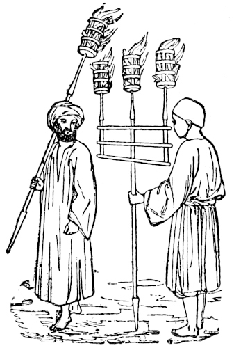 649. One of the less important acts of Mohammad ’Alee I should mention, as it is one which renders my description of the streets and shops of Cairo not altogether applicable to their present state. He has lately caused the mastab′ahs in most of the thoroughfare-streets to be pulled down, and only allowed them to be rebuilt in the wider parts, generally to the width of about two spans. At the same time, he has obliged the tradesmen to paint their shops, and to remove the unsightly “sakeefehs” (or coverings) of matting which shaded many of the sooks; prohibiting the replacing of them unless by coverings of wood. Cairo has, in consequence, lost much of its Arabian aspect.