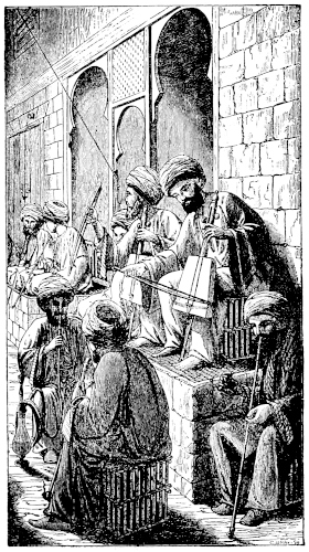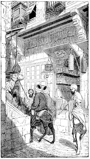 Perhaps the reader may not be displeased if I here attempt to acquaint him more particularly with one of my Muslim friends, the first of those above alluded to; and to show, at the same time, the light in which he, like others of his country, regards me in my present situation.—The sheykh Ahmad (or seyyid Ahmad; for he is one of the numerous class of “shereefs,” or descendants of the Prophet) is somewhat more than forty years of age, by his own confession; but appears more near to fifty. He is as remarkable in physiognomy as in character. His stature is under the middle size: his beard reddish, and now becoming grey. For xiiimany years he has been nearly blind: one of his eyes is almost entirely closed; and both are ornamented, on particular occasions (at least on the two grand annual festivals), with a border of the black pigment called “kohl,” which is seldom used but by women. He boasts his descent not only from the Prophet, but also from a very celebrated saint, Esh-Shaaráwee;[3] and his complexion, which is very fair, supports his assertion, that his ancestors, for several generations, lived in the north-western parts of Africa. He obtains his subsistence from a slender patrimony, and by exercising the trade of a bookseller. Partly to profit in this occupation, and partly for the sake of society, or at least to enjoy some tobacco and coffee, he is a visitor in my house almost every evening.
