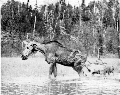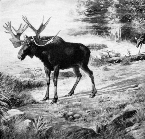 In this the clouts show clearly. The excessive pointedness of the cow’s track is not a fixed character. The hoofs of a moose in swamp country are larger and more pointed than those in a rocky country, because less worn. The cow track, in this case, was sketched in a land of swamps, so that it is longer and sharper than the average.