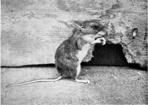 During several nights I passed hours watching at close range the habits of these curious animals. As I sat quietly on a mess box in their midst ... [they] would forage all about with swift gliding movements, repeatedly running across my bare feet. Any sudden movement startled them and all would dart away for a moment, but quickly return.... They were so intent on the food [grains of rice put out for them] that at times I had no difficulty in reaching slowly down and closing my hand over their backs. I did this dozens of times, and after a slight struggle they always became quiet until again placed on the ground, when they at once renewed their search for food as though no interruption had occurred.... While occupied in this rivalry for food they became surprisingly pugnacious. If one was working at the rice pile and another rat or a pocket mouse approached, it immediately darted at the intruder and drove it away. The mode of attack was to rush at an intruder and, leaping upon its back, give a vigorous downward kick with its strong hind feet.... Sometimes an intruder, bolder than the others, would run only two or three yards and then suddenly turn and face the pursuer, sitting up on its hind feet like a little kangaroo. The pursuer at once assumed the same nearly upright position, with its fore feet close to its breast. Both would then begin to hop about watching for an opening. Suddenly one would leap at the other, striking with its hind feet, ... [producing] a distinct little thump and the victim rolled over on the ground. After receiving two or three kicks the weaker of the combatants would run away. The thump made by the kick when they were fighting solved the mystery which had covered this sound heard repeatedly during my nights at this camp.