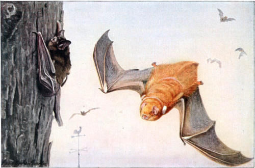 Note.—The attention of the reader is called to an error on page 566, where the Little Brown Bat, Myotis lucifugus, on the tree trunk, a common species throughout most of North America, is labeled “Hoary Bat, Nycteris cinereus,” which is a much larger and very different animal.