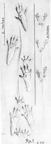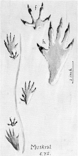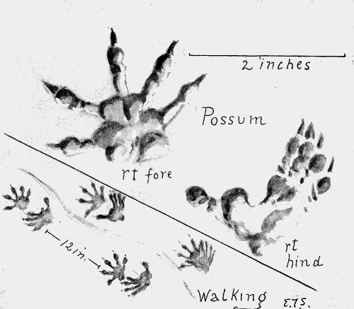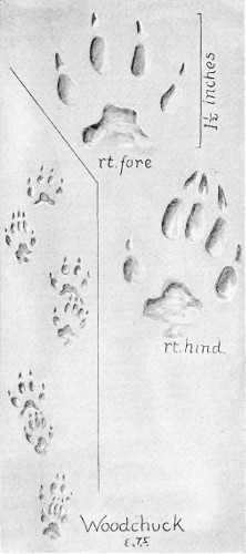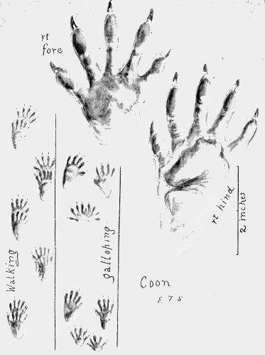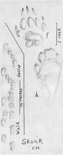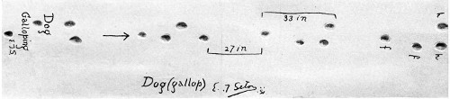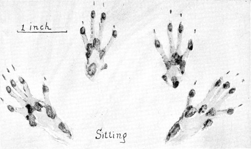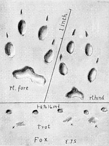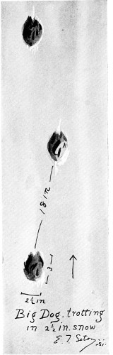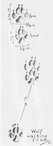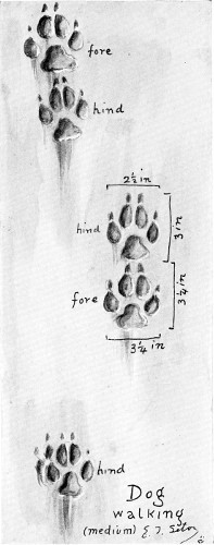The hind feet are, as usual, narrower, though nearly as long as the front. The dog is a loose walker. Sometimes the hind foot is on the track of the front, sometimes ahead, and often behind. The claws show. The dragging of the front feet is another slovenly habit, an evidence of overdomestication.