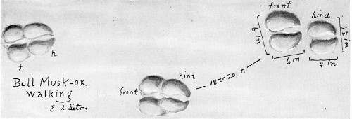 In these the clouts are clearly shown. Note the resemblance to the tracks of the moose (see page 602), which differ chiefly in their greater size.
