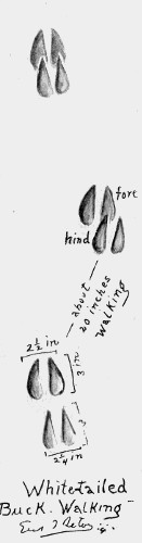 This track differs from that of the buck in being smaller, slimmer, and in having the toes pointing forward or inward—rarely outward. 607