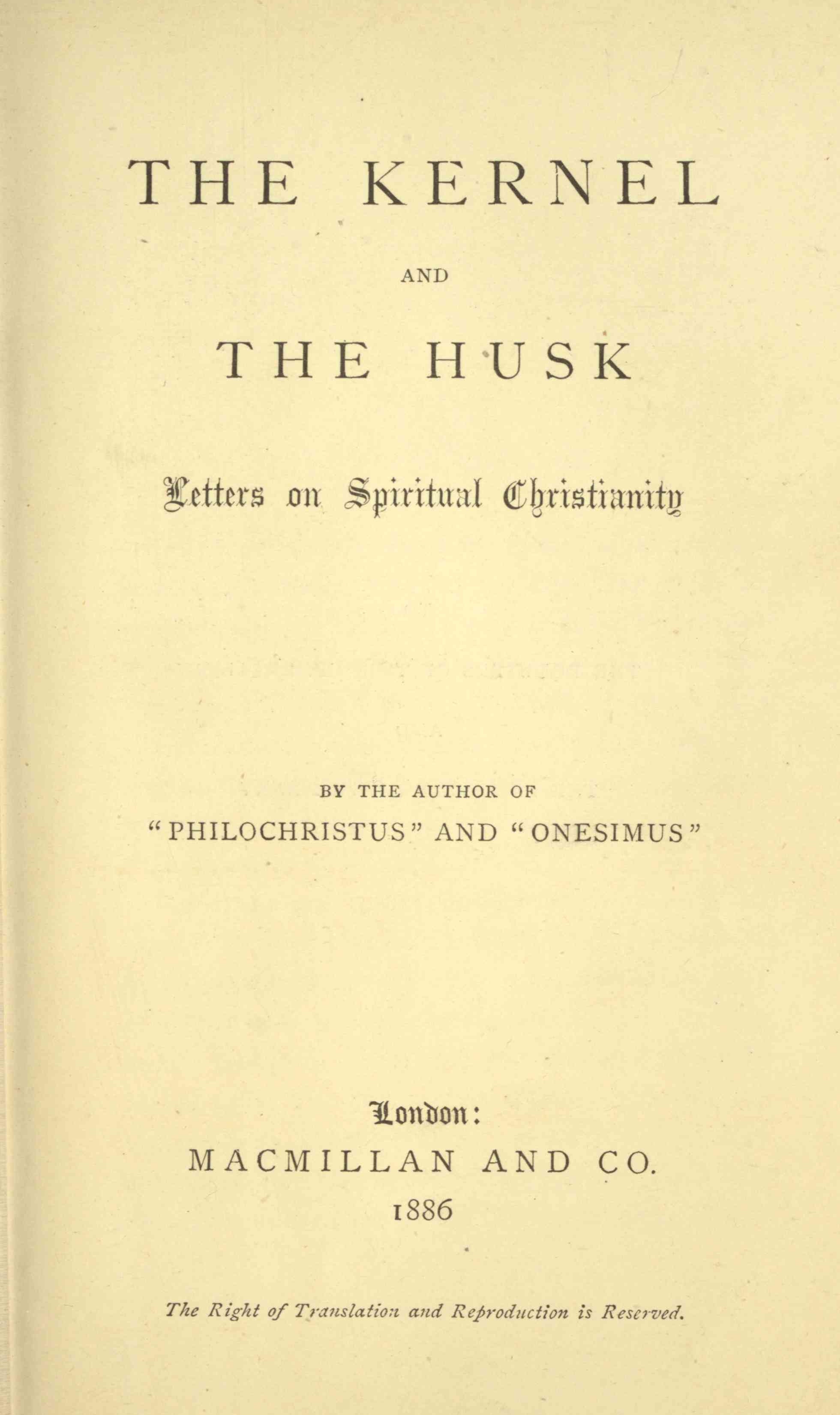 Unfortunately I understand all this too well not to be able to follow with ease such phases of disbelief even when conveyed in hints. Many young men begin by being taught to believe too much, a great deal too much. Then, when they find they must give up something, (the husk of the kernel) their teachers too often bid them swallow husk and all, on pain of swallowing nothing: and they prefer to swallow nothing. An instance of this at once occurs to me. Many years ago, a young man who wished 2to be ordained, asked me to read the Old Testament with him. We set to work at once and read some miraculous history—I forget precisely what—in which I thought my young friend must needs see a difficulty. So I began to point out how the difficulty might be at least diminished by critical considerations. I say “I began”: for I stopped as soon as I had begun, finding that my friend saw no difficulty at all. He accepted every miracle on every page of the Old and New Testament on the authority of the Bible; just as a Roman Catholic accepts every ecclesiastical doctrine on the authority of the Church. This seemed to me not a state of mind that I ought to interfere with: I might do more harm than good. So I stopped. But I have since regretted it. Circumstances prevented me from meeting my friend for some weeks. During that time he had fallen in with companions of negative views, against which he had no power to maintain his position: and he had passed from believing everything to believing nothing. That is only too easy a transition; but I hope you will never experience it. Surely there is a medium between swallowing the husk, and throwing the nut away. Is it not possible to throw away the husk and keep the kernel?