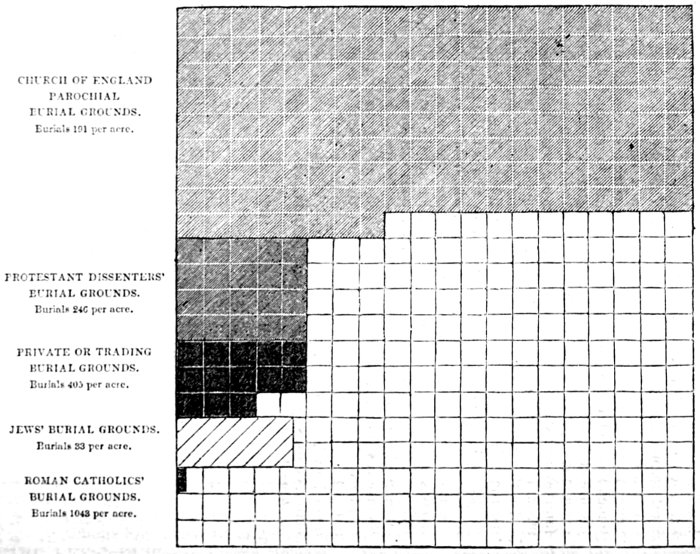 It has been remarked, as a defect in the General Report on the evidence as to the sanitary condition of the labouring population, that it did not comprise any examination of the evidence as to the effects produced on the public health, by the practice of interring the dead amidst the habitations of the town population. I wish here to explain that the omission arose from the subject being too great in its extent, and too special in its nature, to allow of the completion at that time, of any satisfactory investigation in relation to it even if it had not then been under examination by a Committee of the House of Commons, whose Report is now before the public.