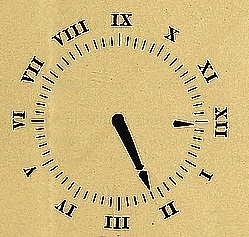 Dial moved up to initial position of zero mark. Elapsed time, 11 minutes. No subtraction, no counting, no uncertainty; but only one record possible at a time.