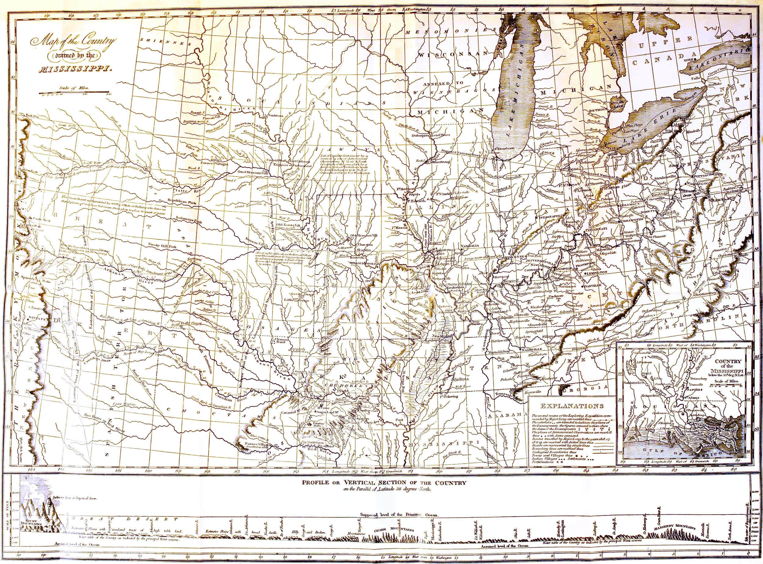 We feel it a duty incumbent upon us, to acknowledge our obligations to many distinguished individuals, both {3} military and scientific, and particularly to several members of the Philosophical Society at Philadelphia, for their prompt offers of any aid in their power to contribute towards advancing the objects of the expedition at its commencement. We are indebted more especially to Professors James, Walsh, and Patterson, to Dr. Dewees and Mr. Duponceau; each of whom furnished a number[pg037] of queries, and a list of objects, by which to direct our observations. These we found eminently useful, and we regret to state that, with many of our manuscripts they were inadvertently mislaid, otherwise, they should have been published in this place, for the information of future travellers.