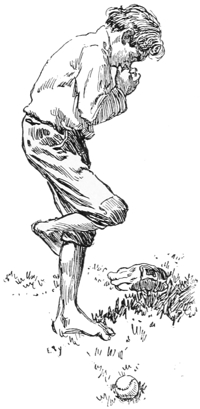 Then, in view of the fact that Billy Lunt had a sore finger, as evidenced by a cylinder of whitish rag (which he slipped off, obligingly, whenever solicited), it was agreed that he be allowed to catch the third strike on the first bounce.