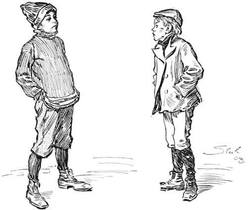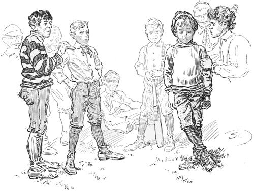 The fateful lot dawned upon the right, around the corner of an alley fence. Hurrah, there they are! You see Nixie and Tom Kemp, and Hod O’Shea, and Bob Leslie, and Spunk, and Screw Major, and Ted Watson, and Slim Harding, and the redoubtable Red Conroy (engaged in bullying a smaller boy), and others who must be the remainder of the Second-streets.