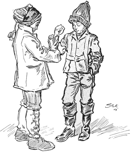 “G’wan!” growled Red Conroy. “Don’t you do it, Spunk. ‘Tain’t goin’ to hurt his old ball any.”