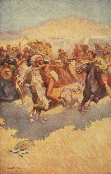 A mounted party of dusky, long-haired figures were descending from a ridge which intersected the valley, before. If these were pesky Arapahoes, once more, perhaps seeking the white men to escort them to the battle, then the company must watch out.