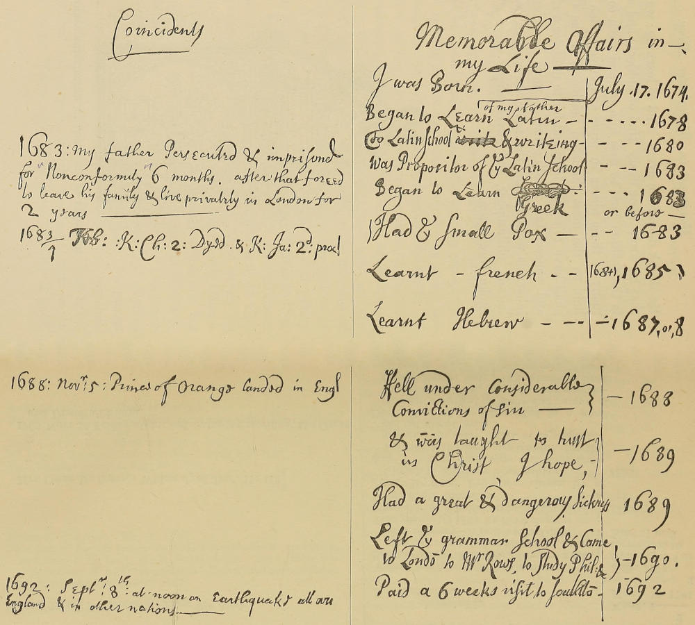 “Thus I have endeavoured, sir, to give you an account of all that I thought material or observable amongst us. As for my own part, I apply myself with what diligence I can to everything which is the subject of our lectures, without preferring one subject before another; because I see nothing we are engaged in but what is either necessary or extremely useful for one who would thoroughly understand those things which most concern him, or be able to explain them well to others. I hope I have not spent my time, since I came to this place, without some small improvement, both in human knowledge and that which is far better, and I earnestly desire the benefit of your prayers that God would be pleased to fit me better for His service, both in this world and the next. This, if you please to afford me, and your advice with relation to study, or whatever else you think convenient, must needs be extremely useful, as well as agreeable, and shall be thankfully received by your most obliged humble servant,