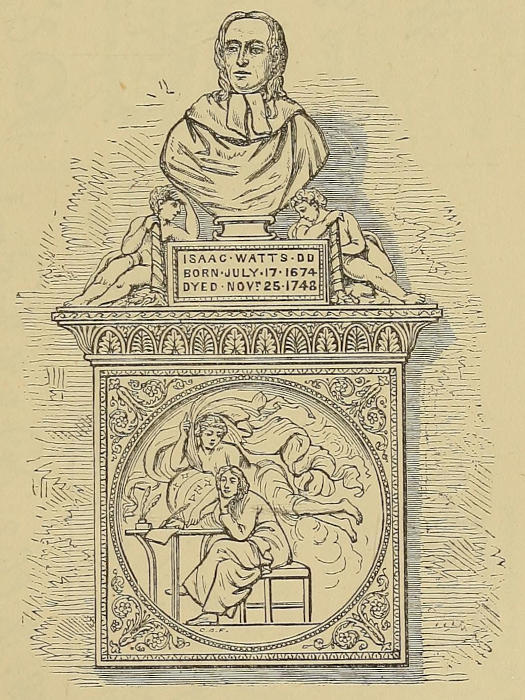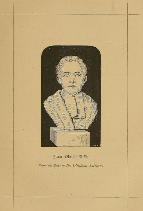 Most men who have left behind them a name so universally honoured and beloved as that of Isaac Watts have shone in many biographies; he reverses the rule, and really has more monuments in stone erected to his memory than there have been readable biographies to record the transactions of his life.