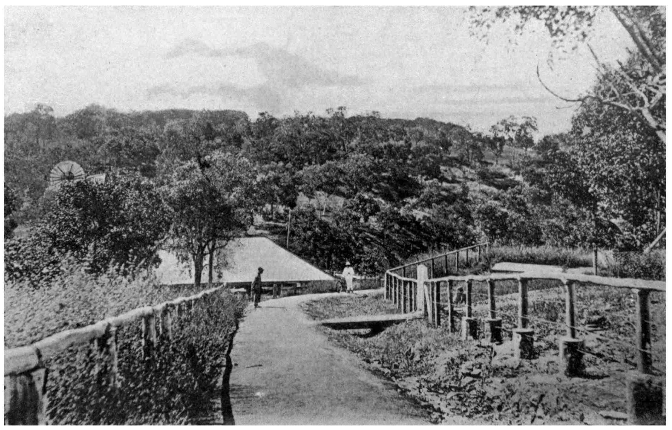 At the entrance to Darwin is the Chinese quarter, all tumble-down tin shanties, unsightly and comfortless, and very poverty-stricken looking, with shrill children screaming and playing in the dust. Its appearance gave one an inkling why Australians would rather dispense with the cheap and efficient Chinese labour than leaven the population of their great clean land with people who could thrive contentedly in a little colony of pigsties. Here suddenly was a bullock cart laden with wood, the little Chinese driver in his immense flat hat, looking exactly as if he had just stepped off a valuable old tea-tray. It was the very soul of all Oriental picturesqueness. Leaving behind the comfortable verandahed houses of the European residents, we struck into a soft red road that led through279 the bush to the Botanical Gardens. It seems incongruous to talk of Botanical Gardens in a place that is yet hardly a town, but in a new country foresight is essential, and the Government has set apart here as elsewhere a reserve for the future, when Port Darwin shall be a great busy port crowded with shipping, and its lonely shores thronged with houses.