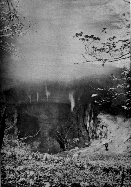 Dóbsina itself lies in a hollow, surrounded with well-wooded hills, the general appearance much resembling some of the valleys of the White Mountains of New Hampshire. My brother and I started from Dóbsina on the morning of the 27th of July, 1895, at half-past seven o’clock, in a little open carriage with excellent horses and a Hungarian driver in national costume. He was a nice fellow, but he did not understand a word of German. The road reminded us of some of our own mountain roads, as it was rough, full of holes and partly washed away by the rains. We first ascended to the crest of the surrounding hills and then descended to the « 14 » Stracena Thal, a wild limestone valley covered with fine forest. Two hours and a half driving landed us at the hotel-restaurant near the cave, at which I should certainly stop on another visit. It was half an hour’s stroll thence, through beautiful woods, to the cavern’s entrance. Northwards in the distance the Tátra Range was visible, a set of sharp bare rock peaks, at whose base, ensconced in pine forests, is situated the famous Hungarian summer resort of Tátra Füred, which much resembles Bar Harbor.