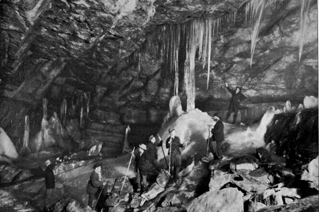 As for any possibility of this great mass of ice melting away and forming again in any one year, it passes belief; there must be at least the cubic contents of a dozen ordinary houses in the cave, and such a mass could hardly be destroyed or formed again in any such « 5 » short space of time as a fall or spring. This is, therefore, probably a permanent or perennial glacière.