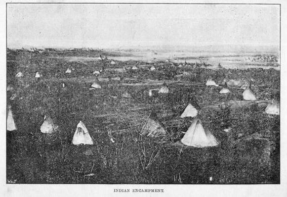 We pitched our tents, hobbled our horses and turned them loose, as usual. We cooked our evening meals, said our prayers, unrolled our camp-beds, and lay down to rest without earthly sentinels or guards around us, although the camp-fires of these so-called “treacherous and bloodthirsty” Sioux could be seen in the distance, and we knew their sharp eyes were upon us. Yet we lay down and slept in peace, and arose in safety. Nothing was disturbed or stolen.