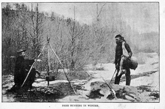 As she pushed out in her canoe from our shore, her last importunate request was, that as soon as possible I would visit her and her people in their own land. So many were my engagements that I could not take up this additional one until about the middle of the winter following. When, with a couple of Indian attendants, with our dog-trains, we dashed into her village, great indeed was her joy at seeing us, and very demonstrative was the welcome given. She had put up on a staging outside in the cold a couple of reindeer heads, keeping them there preserved by the frost until I should arrive. Very quickly were they taken down to cook. The hair was singed off, and then they were cut up with an axe into pieces weighing about two pounds each. Soon they were in the pot, boiling for our dinner. I furnished some tea, and while everything was being got ready by a few, the rest of us sat down and talked.