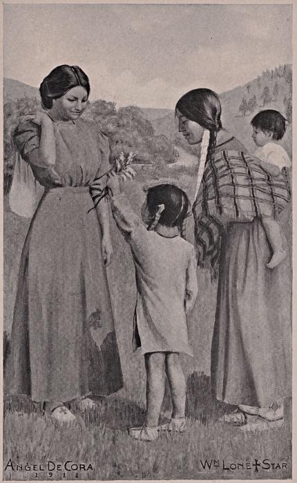 And now the simple, loving preparations were all complete. Not without self-sacrifice, a feast had been provided for the visitors, forage for the visitors’ horses, fresh vestments for the clergy, and candles for the plain little altar. Near the little Gothic church at the agency rose a wide circle of teepees, looking as if a flight of great, white birds had suddenly alighted upon the sunburned grass. Children ran joyously to and fro, men gathered in groups, matronly women bent over their camp-fires, and the soft music of their greetings was in the air.