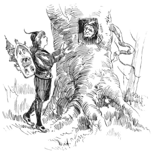 | "But presently a little window opened in the side of the tree trunk, from which a wrinkled old face looked out" | 56 |