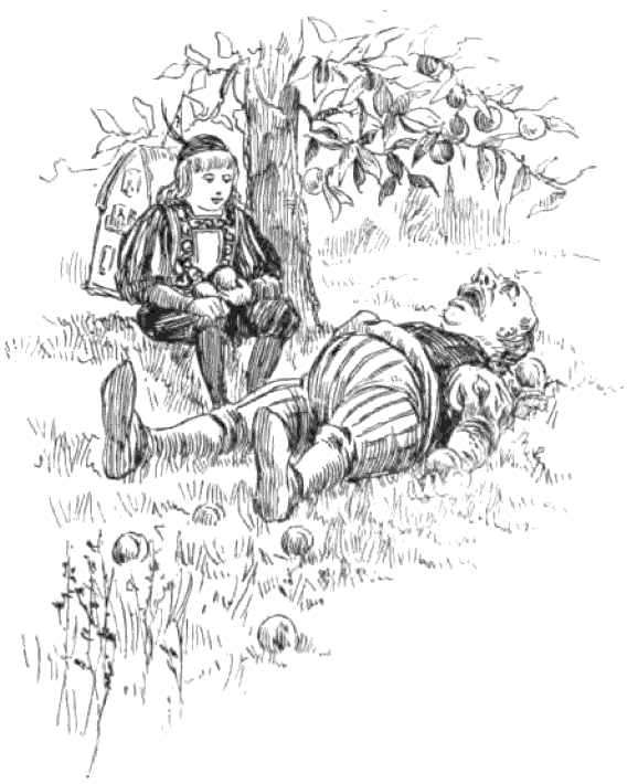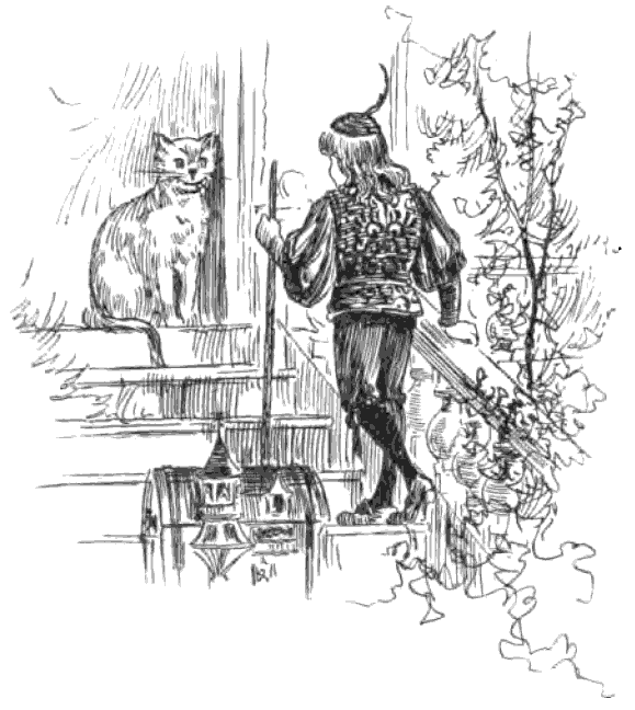 He was so weary, however, that he could not keep his eyes open, and presently he was as sound asleep as a dormouse. At length the cat touched him on the shoulder, her claws pricking him so that he sprang up in a hurry.