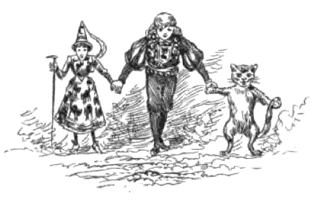 "I've sent a message by telegraph to the court cat," he announced. "Go through that white gateway, and you'll come to the high-road. It is the southern boundary of Jolliland. Your way is straight. By sunset you will be at the castle. The cat knows all."