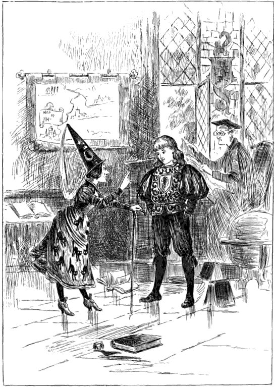 "Not that I shall miss you much, with your scoldings and fault-findings!" replied the saucy Prince; and as[Pg 18] she vanished before his eyes, according to her startling custom, he began shying his books at the head of his tutor, to the great discomfort of that unhappy man, who thought that his lot in life was indeed a sad one, and wished himself a wood-cutter in the royal forest, or indeed anything rather than what he was.