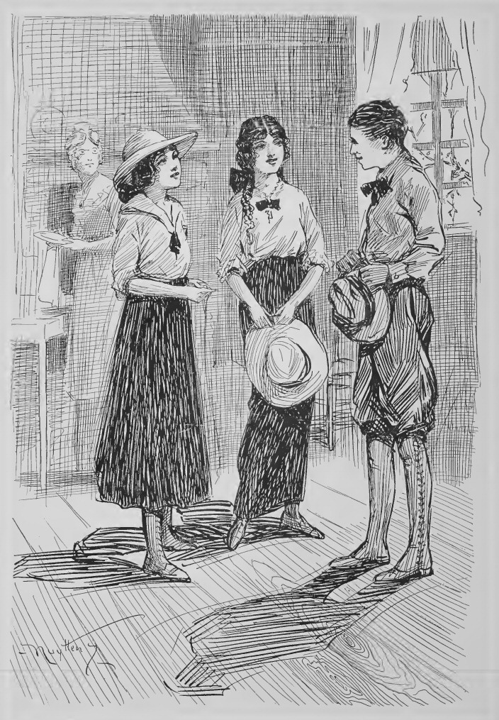 “You see,” the fairest of them was saying—the one the others called Carin—“I don’t really want to go to Europe with father and mother this time. It isn’t as if they were going to stay in one place. They’ll be traveling the whole time, because, you see, father is going on business, and mother is going along to keep him company. It wouldn’t be very pleasant, would it, to hear mother saying: ‘And now what in the world will we do with Carin to-day?’ Really, you know, I wouldn’t at all enjoy having my name changed to ‘Little-Carin-in-the-Way.’”