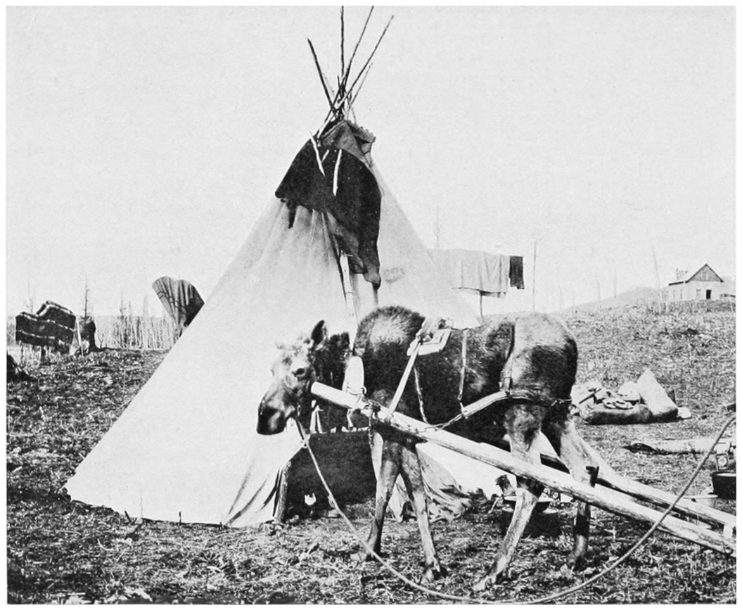 The Photograph entitled “A Moose and Indian Tepee,” reproduced to face page 218 and on the wrapper, is the copyright of Ernest Brown of Edmonton