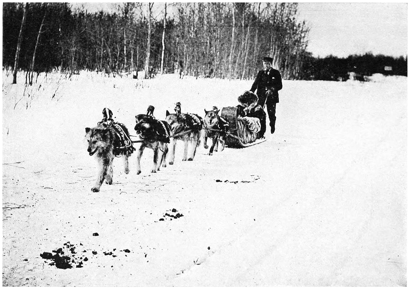 The host however, was very resourceful and just at the psychological moment he saw one of his men, a faithful Scotch half breed, passing with a team of dogs. He at once259 hailed him and asked him into the august presence of the great men of the company. Archie, with cap in hand, greatly surprised at such conduct on the part of his master, wondered at first what fearful act of insubordination he had committed. To his surprise, however, he was asked to help himself to a decoction which the agent prepared. Archie was then asked to sit down and smoke his pipe before starting out on his long journey with his dog team. The assembly watched eagerly to see the effects on him but none appeared, when the agent filled his glass again making the mixture stronger than before. Sufficient time was then given to show that no evil effects were to follow, when Archie was told that his dogs would be getting cold and that he could go. What happened after this need not be stated!