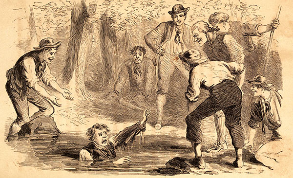 O, not at all. If you mean, by being poor, that they had not much money, or horses, or carriages, or rich dresses, and servants to wait on them, why, then they were poor; but if you mean by the term poor, such poverty as you see in the cities or in the large country towns, where you may see aged women in rags begging from door to door; children with their little bare feet as red as the pigeons’ with the cold, picking the little bits of24 coal out of the ashes that are thrown out of the stores and houses; gathering pieces of hoops and chips around the wharves and warehouses to carry home to burn; with the tears running down their little cheeks, crying, “Please give me a cent to buy some bread,”—O, there was no such poverty as that there: they never knew what it was to want good wholesome food, and good coarse warm clothing to keep out the frost and snow.