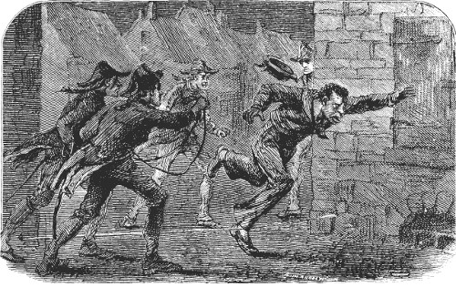 Walter and Ned went to the yard, where they found Juan fast asleep. Walter gave a light tap on the door of the lock-up, when it was instantly opened, and they entered. Peterson had drawn the staple. The black grasped the hands of his young deliverers, and sobbed for joy. They left immediately, closing the door silently after them, and sought the beach, soon coming to a watchman fast asleep, with Dick standing by, ready to throttle him if he stirred. They passed on till they came to another, whom Lancaster was watching, in the same situation. All were now safely passed but the last, whom they saw at a distance, pacing along the beach.